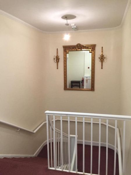 It previously had very dated wallpaper and dark wood on the stairs and throughout. We stripped off the old wallpaper, made good of the walls and finished it all off with a nice light coloured paint.